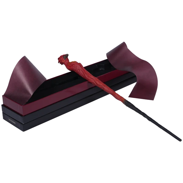 This wand is inspired by the noble Phoenix, particularly the brave and loyal Fawkes. First seen on screen in Harry Potter and the Chamber of Secrets, Fawkes resides in Albus Dumbledore office as an ever loyal companion to the headmaster.Â