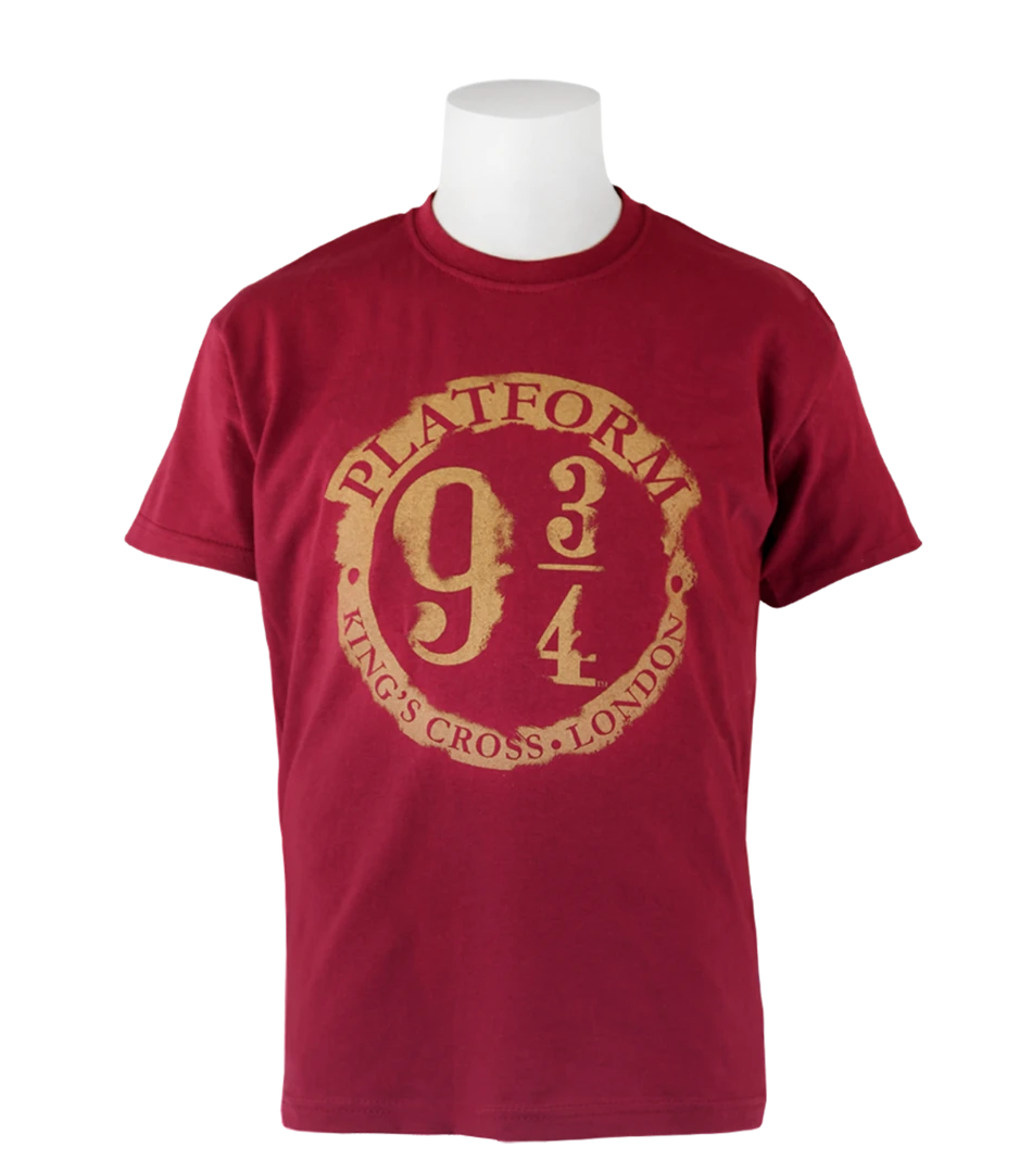 The burgundy t-shirt features a bespoke design of the iconic Platform 9 ¾ logo in a unique gold distressed print, featured on both the front and the sleeve. The cosy kids unisex t-shirt is made from 100% super-soft cotton and is machine washable. The perfect addition to add to any wizard, witch, or muggle’s Harry Potter collection.