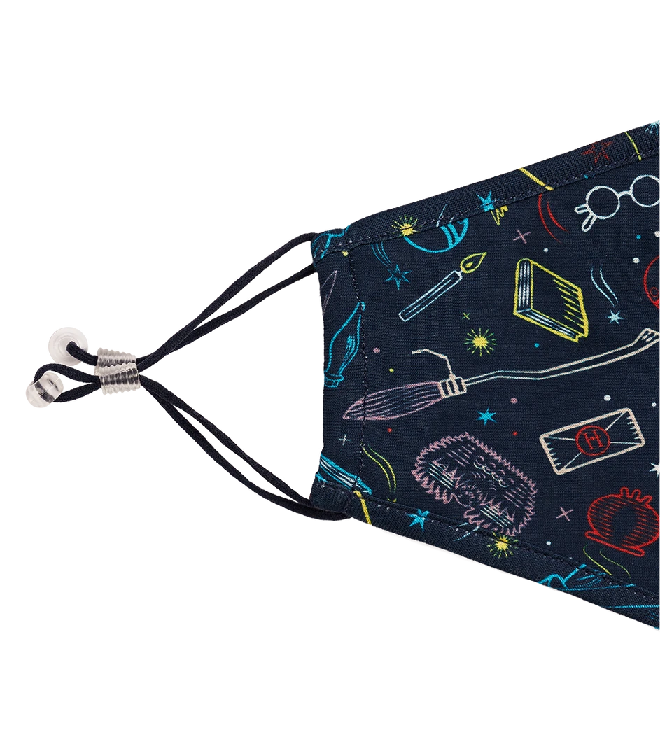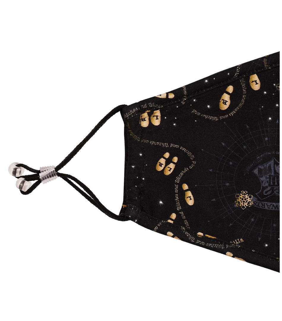 One mask includes a Marauder’s Map design on a black background, and the other is made up of bespoke designs of a broomstick, journal, and Harry Potter’s iconic glasses on a navy background. The masks include an adjuster and stopper, for a better and more comfortable fit.