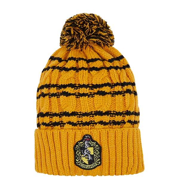 Keep warm and cosy on trips between Hogwarts and Hogsmeade with this Hufflepuff Knitted Hat. The hat features the traditional Hufflepuff colours of bright yellow and black and has been designed with the Hufflepuff house crest embroidered into the centre of the hat which showcases a badger, the iconic animal of Hufflepuff.