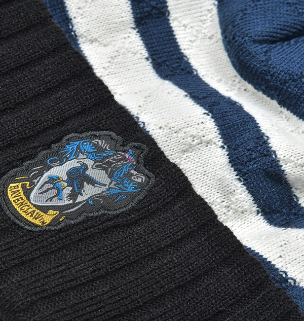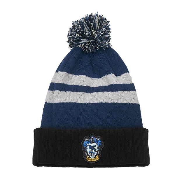 This striped Ravenclaw bobble hat will have you warm and comfy in the cooler weather. Offered in the traditional navy dark blues and silvered tones of Ravenclaw, there will be no doubt which Hogwarts house is your favourite!